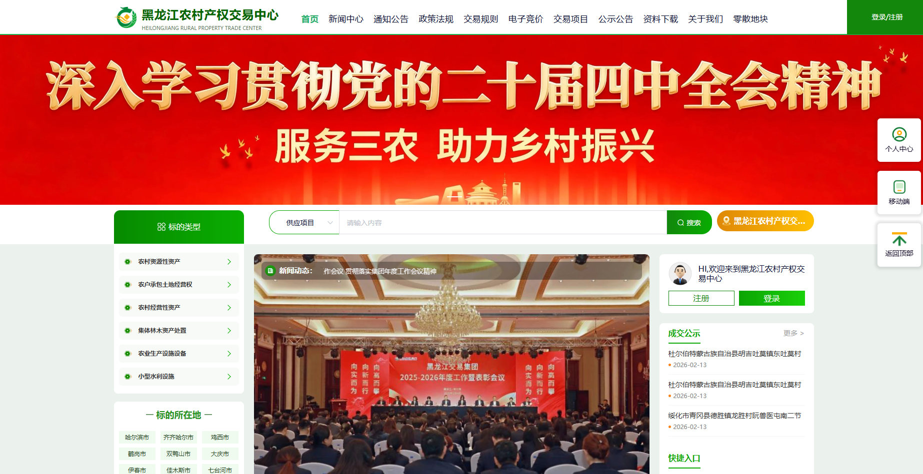 作为我省唯一省级综合农村产权交易服务机构,黑龙江农村产权交易中心(以下简称“农交中心”)始终秉承服务“三农”、助力乡村振兴的使命担当,积极融入全国统一大市场建设,以规范运营、数智赋能、创新实践、区域协同为抓手,为龙江农业农村现代化注入稳健而鲜活的农村产权动能,过去一年以来,农交中心各项工作扎实推进、成效显著。