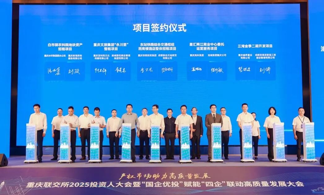 新闻中心 > 行业动态2025年9月24日,以“产权市场助力高质量发展”为主题,由中国企业国有产权交易机构协会(以下简称中国产权协会)、重庆市国资委联合主办,重庆联合产权交易所集团(以下简称重庆联交所)承办的“重庆联交所2025投资人大会暨‘国企优投’赋能‘四企’联动高质量发展大会”在山城重庆隆重举行。本次会议深度解读投资趋势,汇聚全国投资力量,搭建高效对接平台,推动产权市场在优化资源配置、促进各类所有制经济协同发展,纵深推进全国统一大市场建设中发挥更大作用。